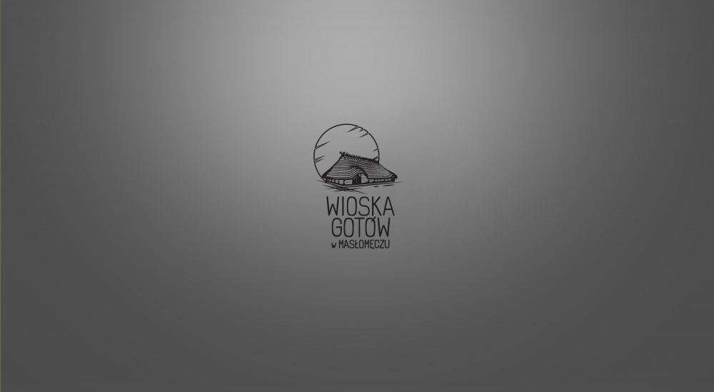 Logo dla skansenu Wioska Gotów w Masłomęczu oraz część materiałów promocyjnych. Logo przygotowane w dwóch wersjach achromatycznej oraz kolorowej.